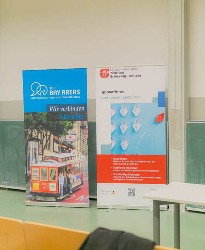 Die einzelnen Teams aus ganz Schleswig-Holstein präsentierten in kurzen Pitches ihre innerhalb von einer Woche ausgearbeiteten Ideen und stellten sich den kritischen Fragen der Jury. Es ging dabei um Themen wie Energiedienstleistungen, Mobilität der Zukunft und das Metaverse.