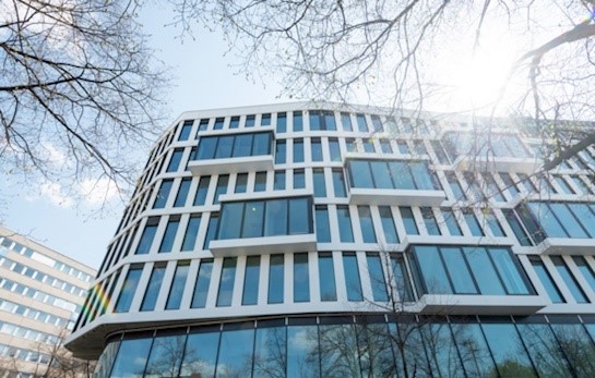 Das siebengeschossige Bürogebäude „Pulse Berlin“ mit Tiefgarage mit ca. 14.500 m² Mietfläche bildet den Abschluss der Entwicklung des ca. 3.000 m² großen Grundstücks.