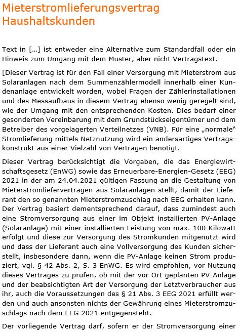 12.05.2021 | Nachdem wir Ende März berichteten, dass die Musterverträge zur Wärmelieferung aktualisiert wurden, können wir nun auch berichten, dass die Musterverträge zur Strom- und zur Kältelieferung auch aktuell sind. Außerdem neu dabei, ein Muster zum Mieterstrom.